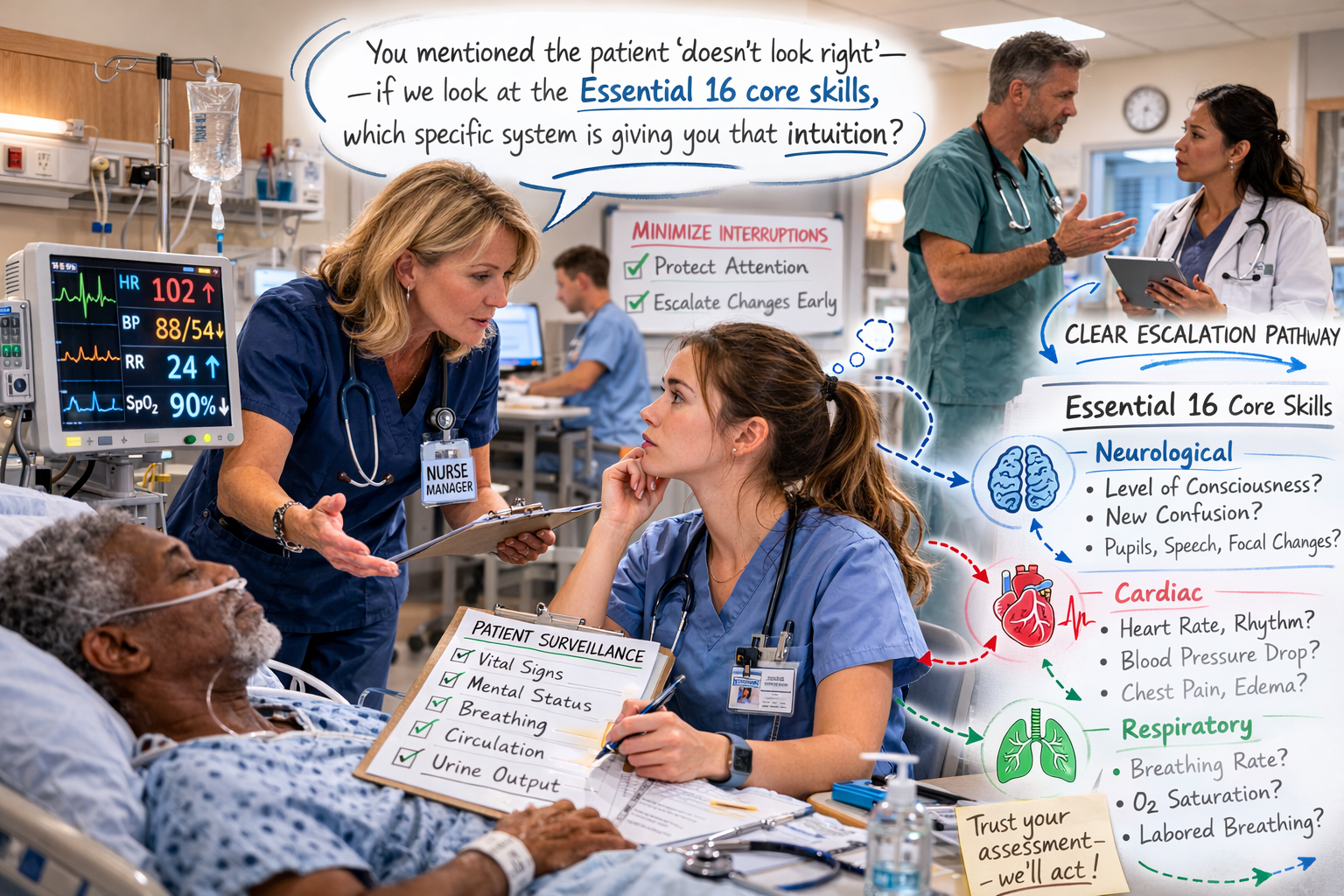 Do I create psychological safety about errors in surveillance? If a nurse detects a change but misses the “window” for early intervention, do we discuss it as a system-level learning opportunity rather than a personal mistake?