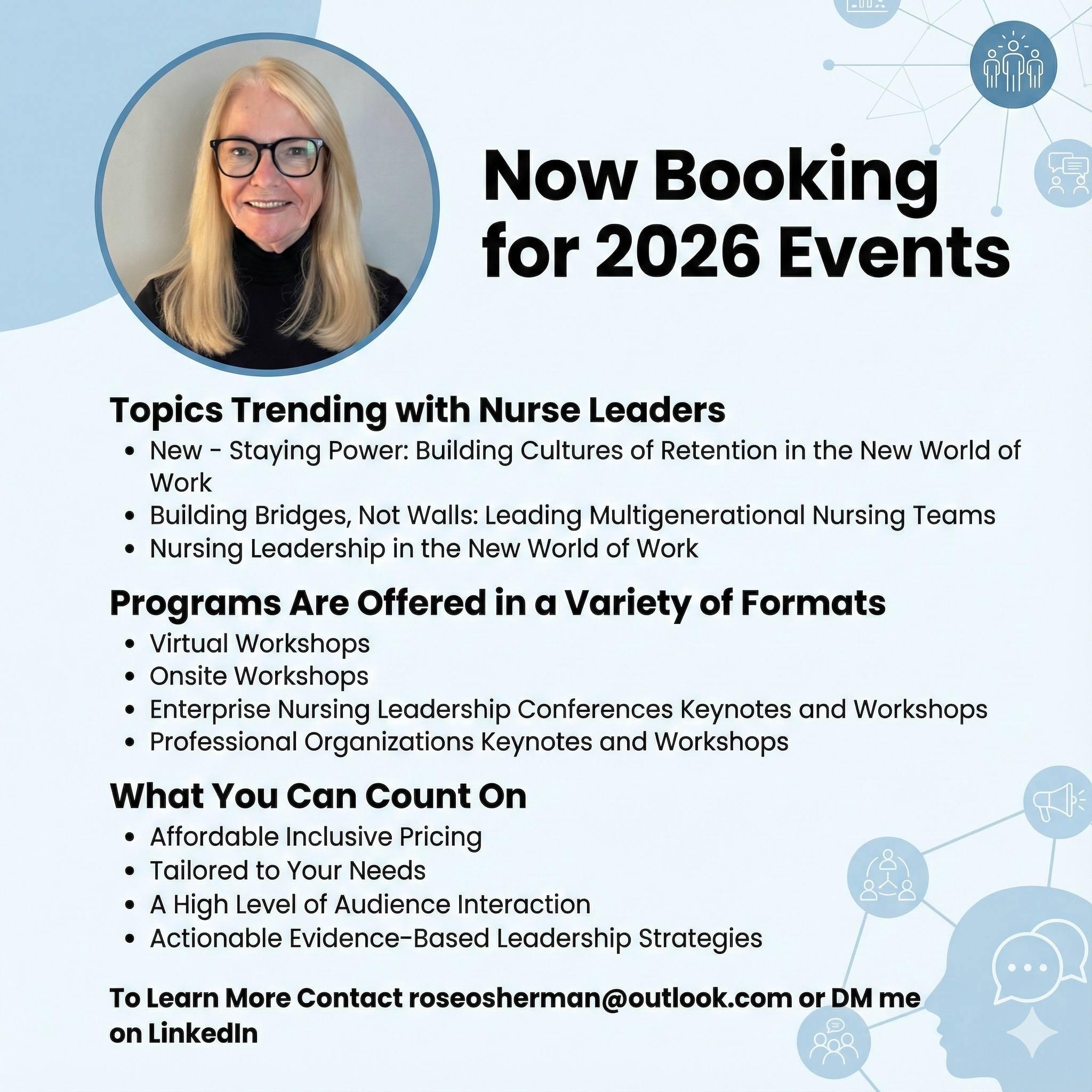 Give your nurse leaders the gift of leadership development in 2026. I am now booking 2026 sessions.